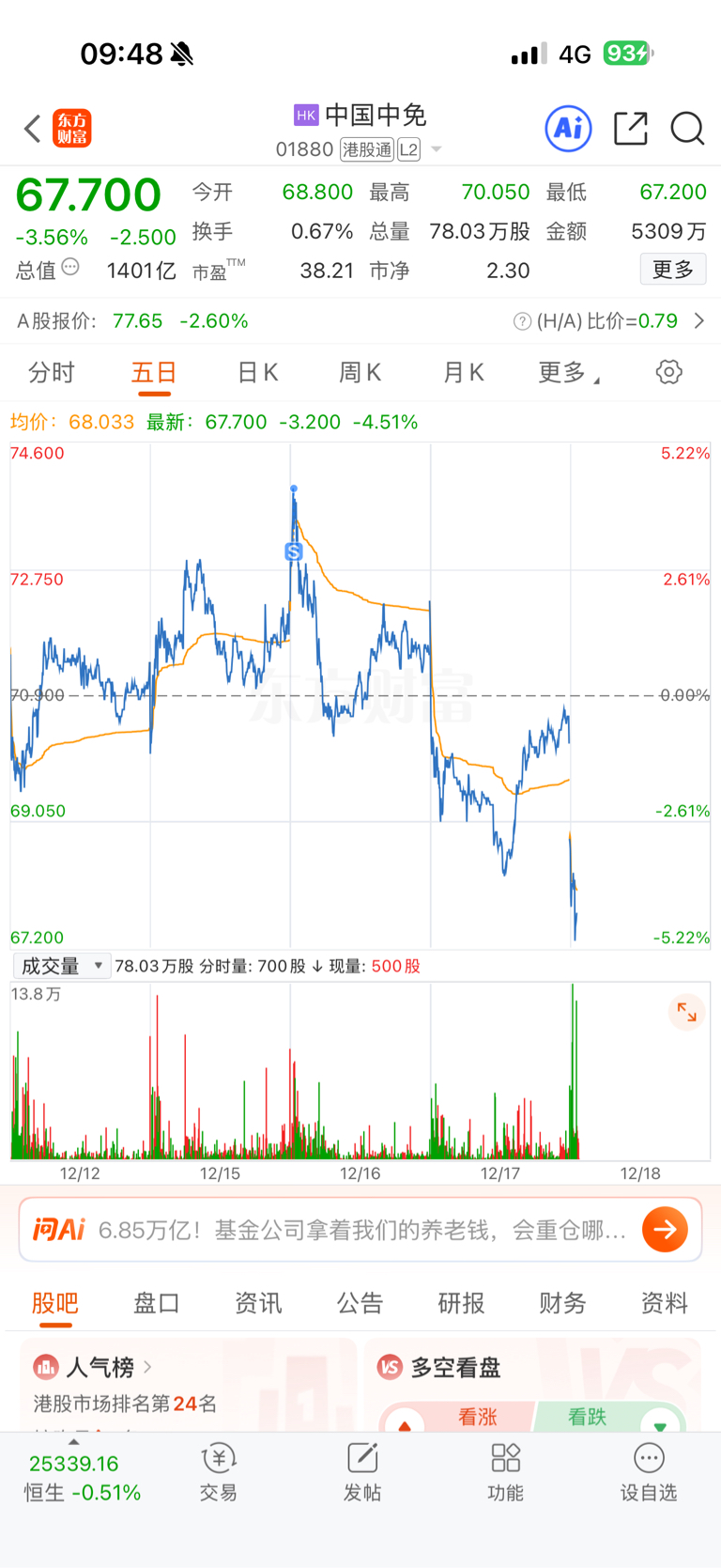 $中国中免(SH601888)$ 我的问题,给它卖崩了