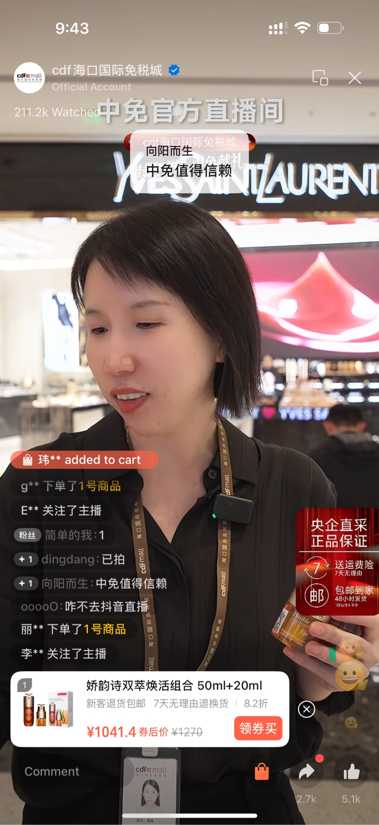 直播间20万人,我扫了一下百分之二十的商品卖空了,免税店一两千人排队,不信去小红