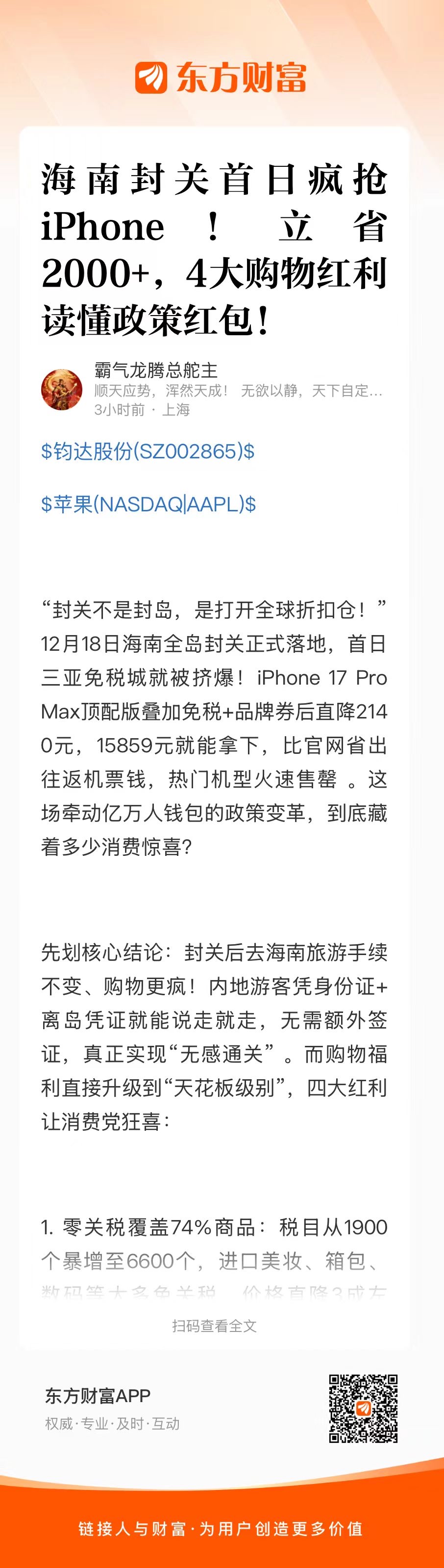 封关才是开始,业绩必定反转,岛内居民有额度,都可以买