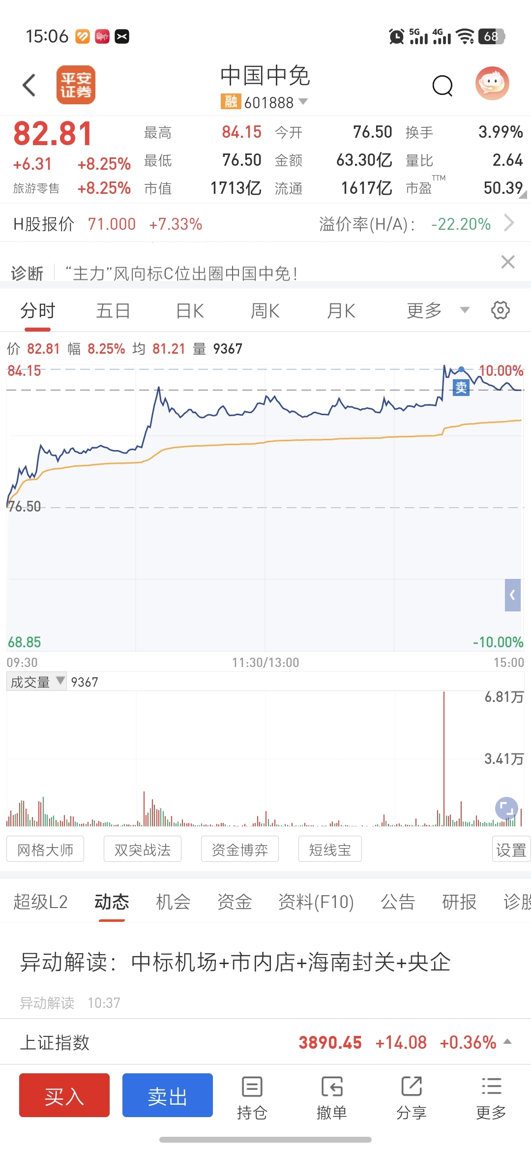 $中国中免(SH601888)$ 不冲涨停我是不想出的。但是冲又不果断我还是先走了,宁愿到时追高买也不愿被套路。如果明天有低开还可以当个T.反正我太讨厌这种高位滞留了。感觉没想象中强势