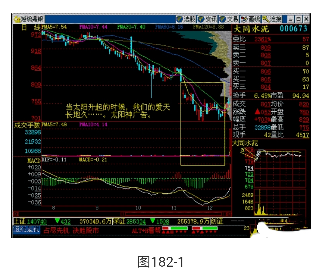 当大阳升起的时候今天上午开盘后,大同水泥就开始急剧放量往上涨,一度冲至涨停板,下