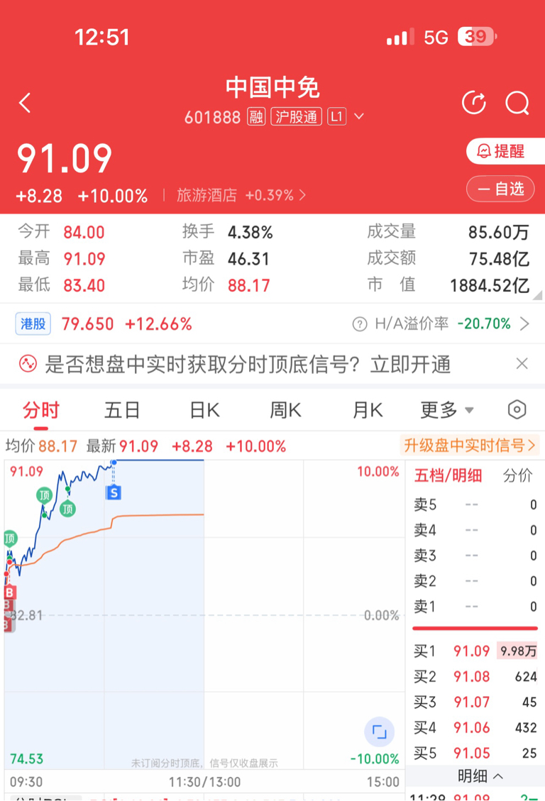 $中国中免(SH601888)$ 来,我现在就截图,下午我还会卖一点,不要买了就见不得别人说调整,另外我是多头。你要是觉得能一直拿就一直拿。我大不了明天再追就是,仓位决定打法。