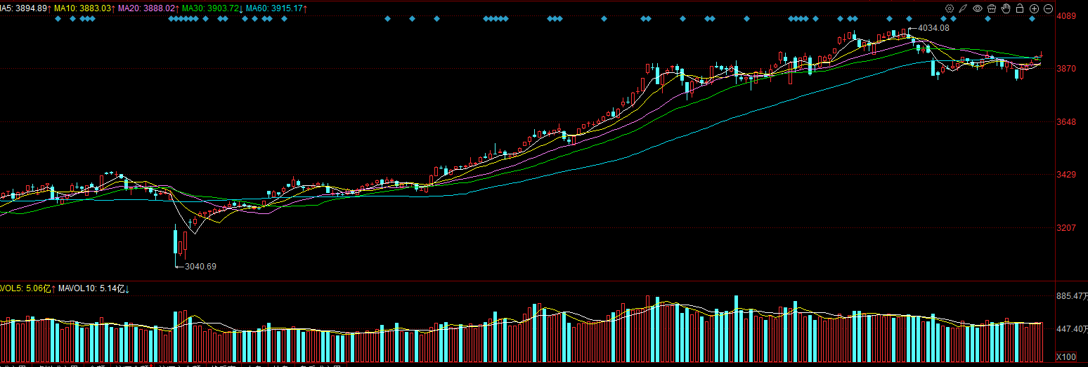 周三分时走势预计将呈现先抑后扬态势,开盘后可能先测试3900点附近支撑,随后向393935点上方发起攻击。同时也是需要注意分时均线黄白两先会分离的可能,指数走势一根还是比较稳,个股就不一定。这种情况在震荡市中属于正常现象,短线把握好节奏很重要。