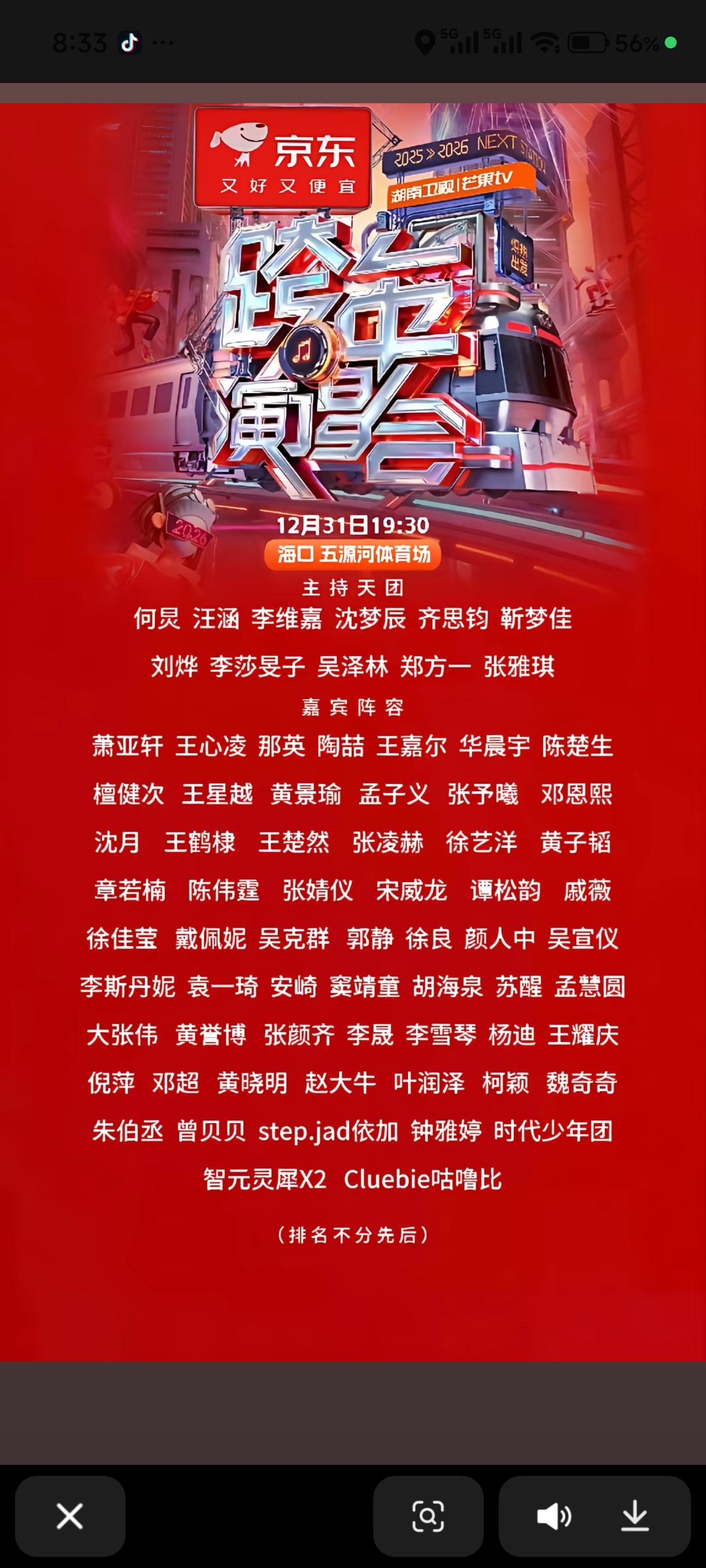 $中国中免(SH601888)$ 湖南卫视跨年演唱会。这个阵容。在中免海口国际免税城旁边。