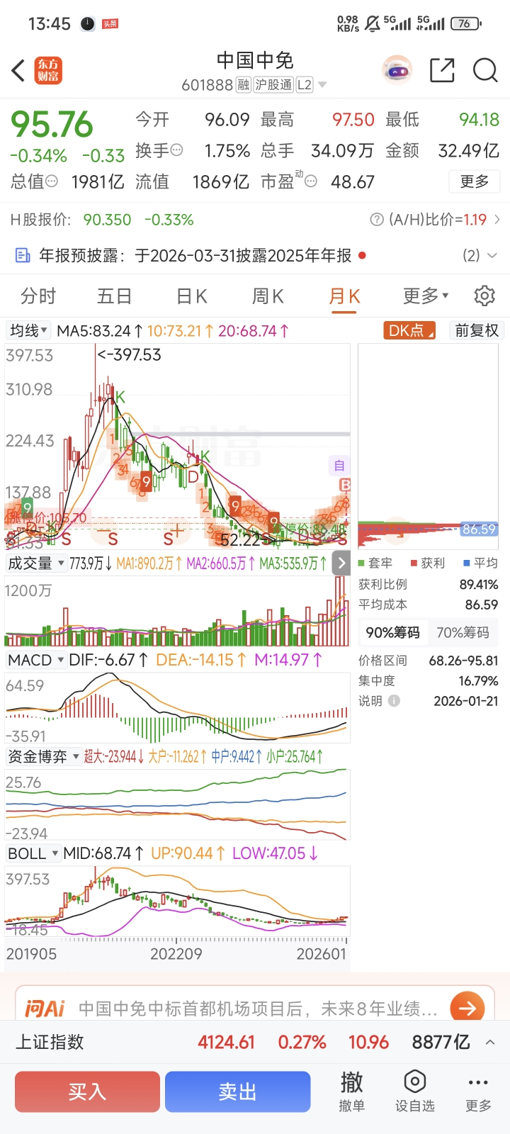 $中国中免(SH601888)$ 拉到月线多漂亮,稳稳的幸福