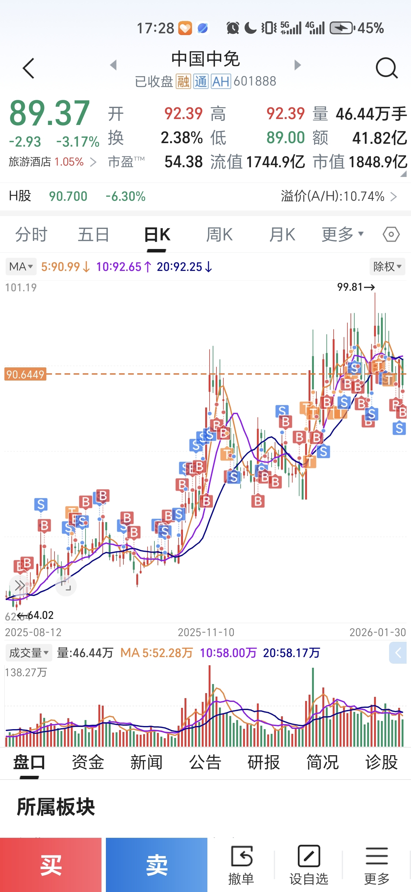 $中国中免(SH601888)$ 从60多一路拿到现在,从最高峰3500股,到现在减仓至300股,一路也不断做T,T飞过也T对过。这一路走来不容易,有过恐惧,和贪婪,也坐过几次过山车,也被折磨的精神颓废。好在感谢中国中免让我回本,3年了终于回本了还略有盈余。留几百股放着,盈亏由天,也算是报答。#收盘点评# #复盘记录# #股市怎么看# #实盘记录#