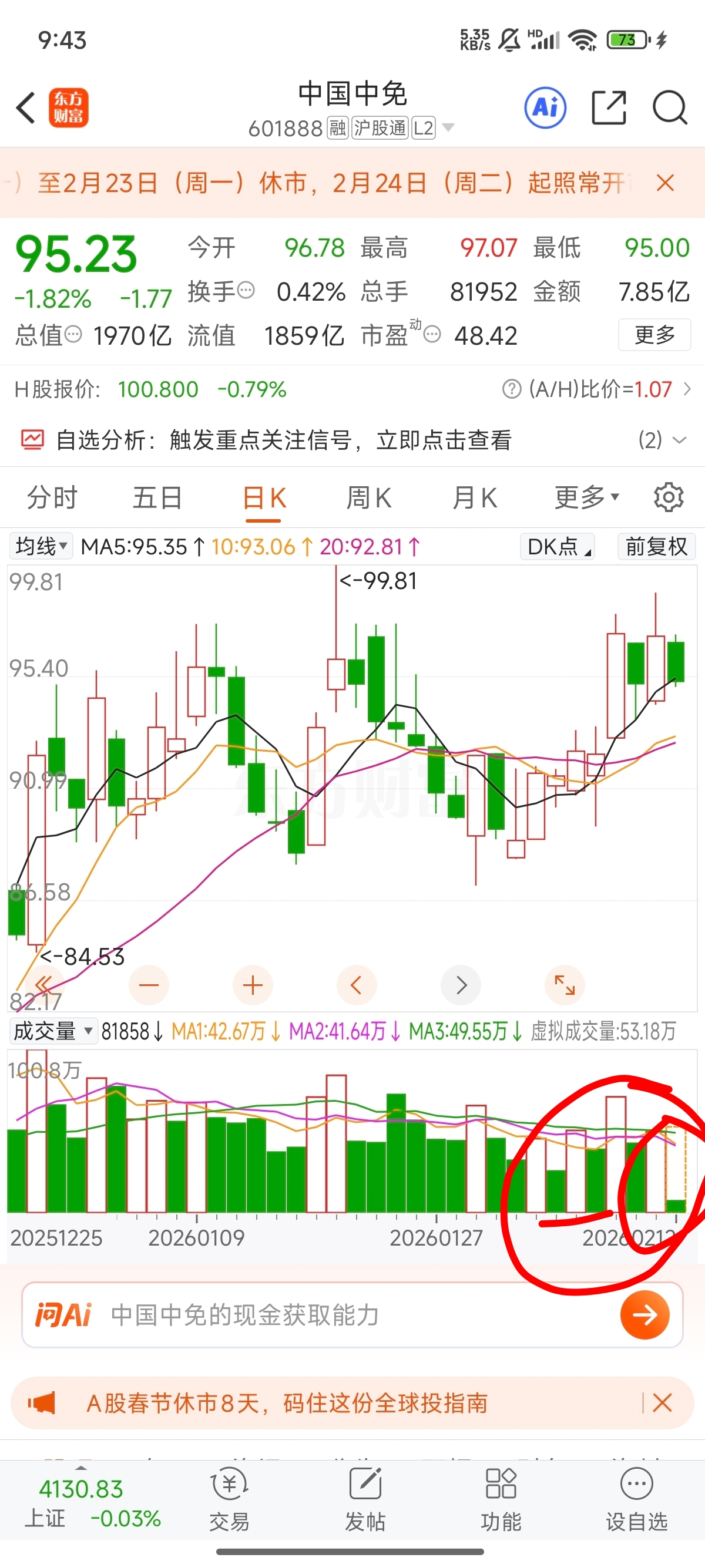 $中国中免(SH601888)$ 阶段顶部,量化对倒后,放量出货,把小散挂在高高的山顶