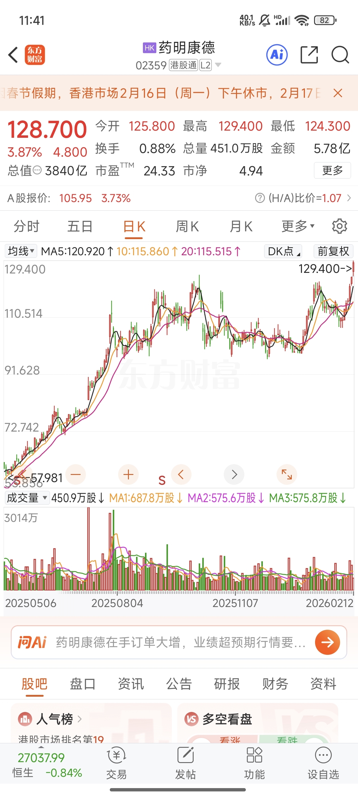 中国中免的结局可以参考药明康德!a股终究是路边一条!而港免暴跌-50%时,必定带