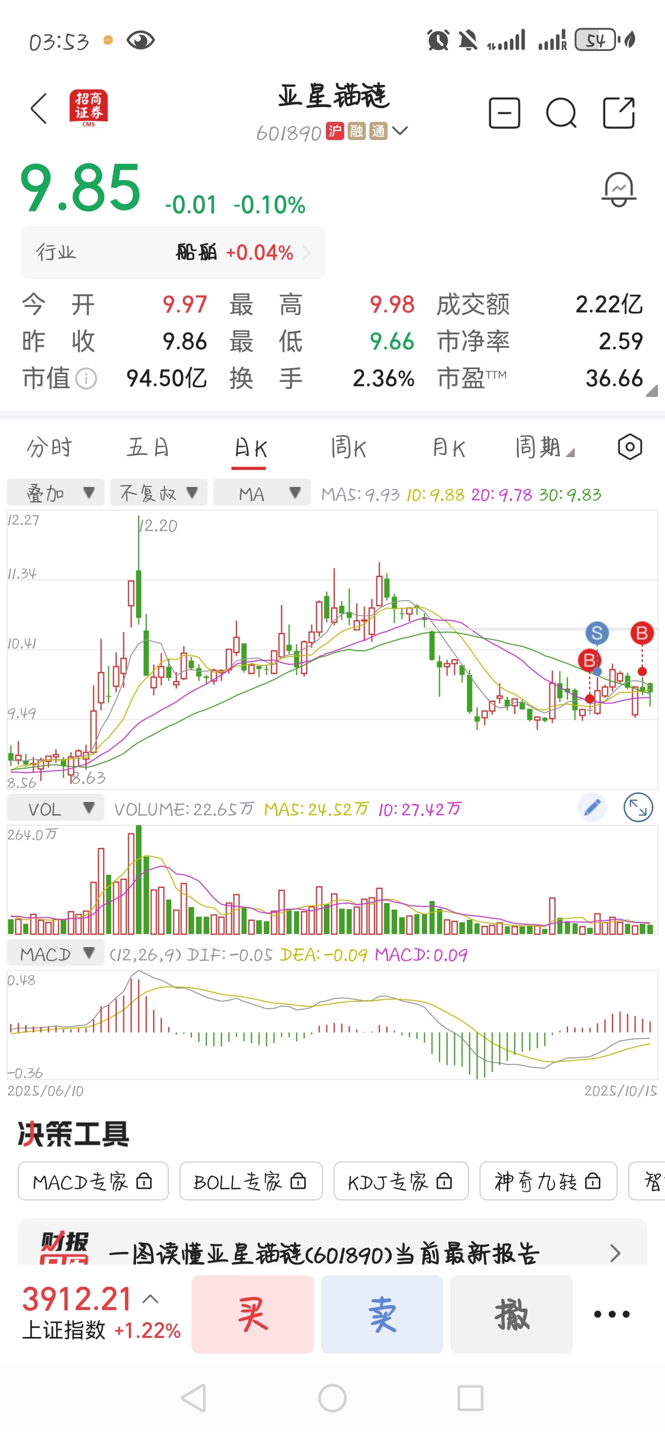 $亚星锚链(SH601890)$ 昨天我9.90买进来的时候,股吧好多人说啥江龙厉害,今天反而江龙跌的厉害,韭菜就是这样,只看得见当天的收益,看不到未来,钱就是这样乱动乱追没的。这个票耐心等几天,总有高点#收盘点评#