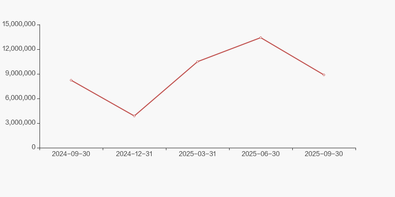 截至2025年9月30日,公司最新总股本为9.59亿股,且均为流通股。户均持有流通股数量由上期的8250股上升至8395股,户均流通市值8.52万元。
