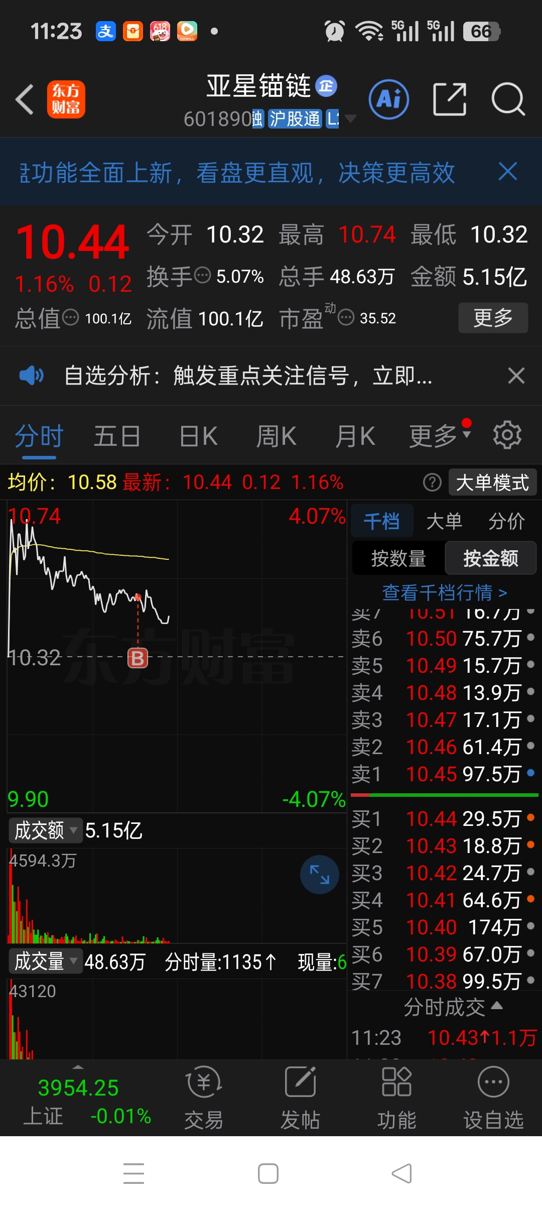 $亚星锚链(SH601890)$ 哦,在等我啊,我刚刚买