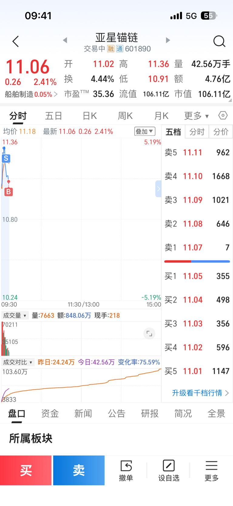 $亚星锚链(SH601890)$ 涨又不敢卖,跌又不敢买,炒什么鬼