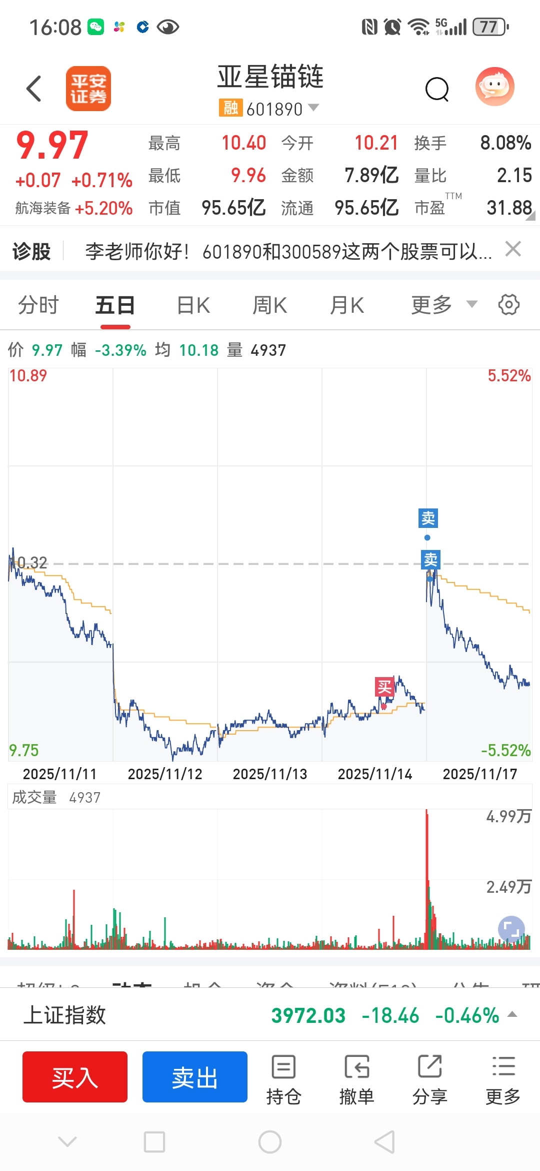 $亚星锚链(SH601890)$ ?还是蛮舒服的