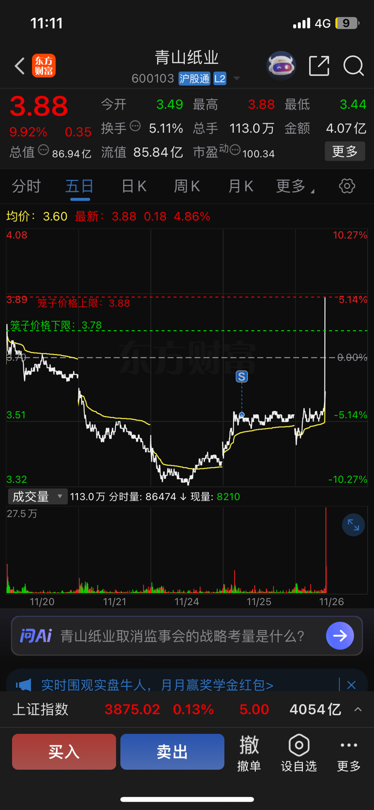 给股友们说句解闷的,我是亏了11个点卖了青山纸业买的你