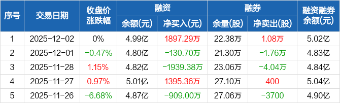 亚星锚链:融资净买入1897.29万元,融资余额4.99亿元(12-02)