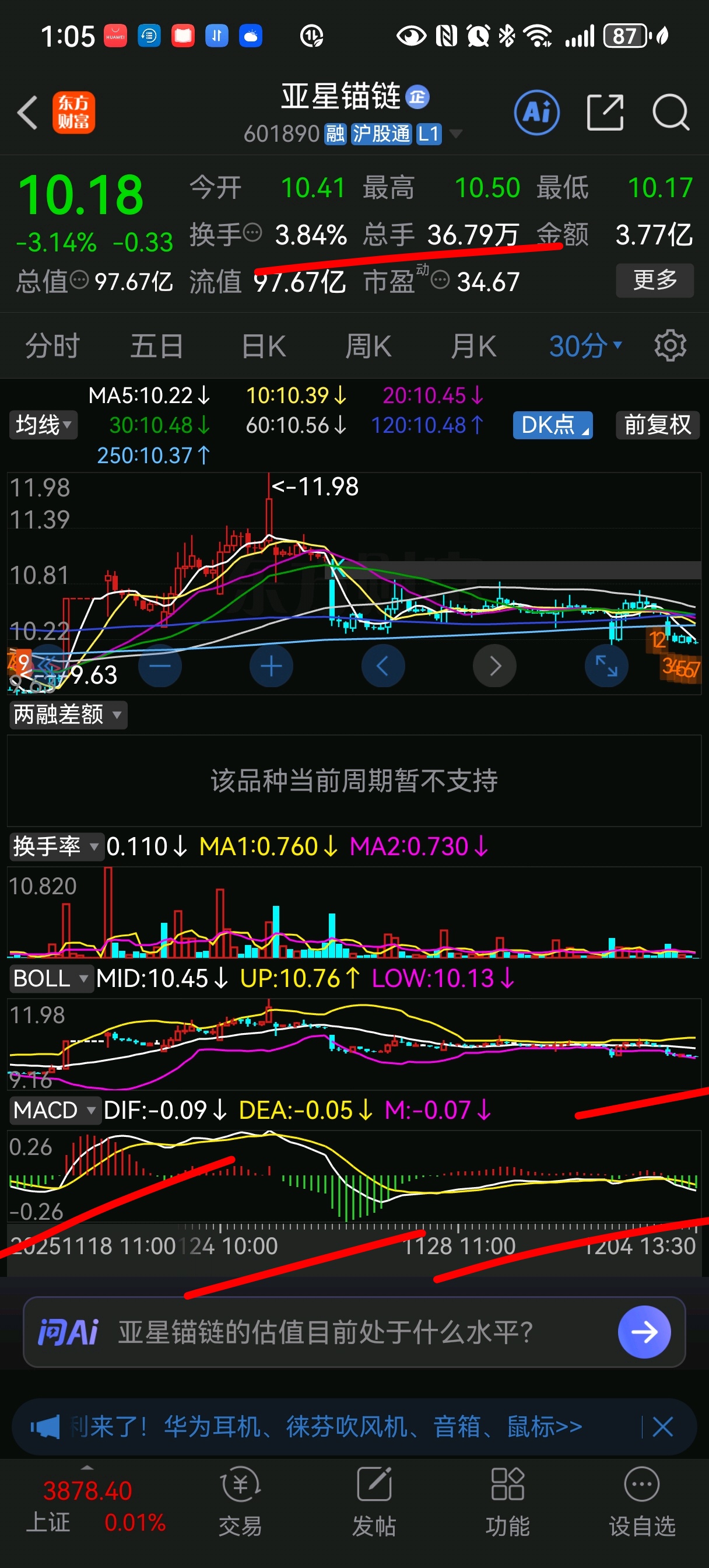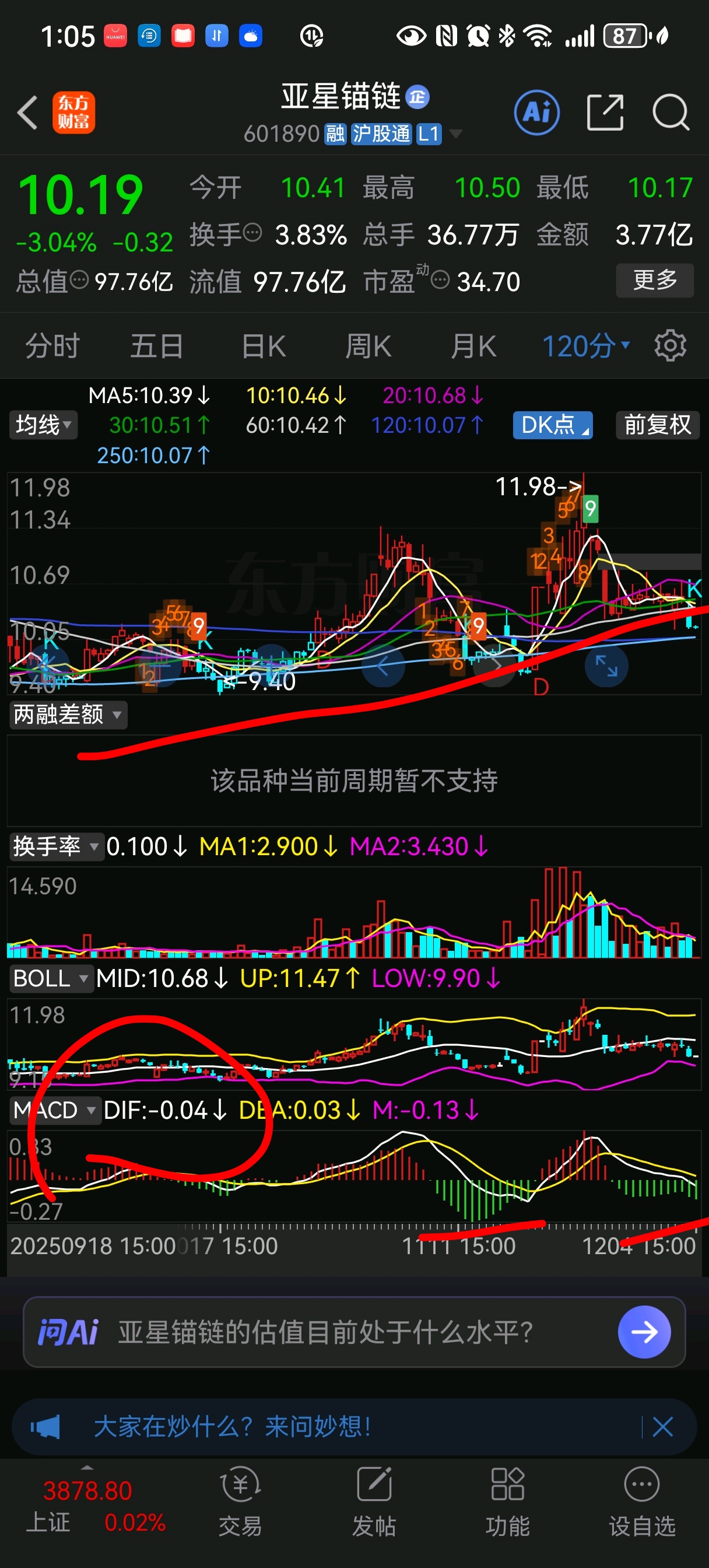 120分60分30分全部调整到位!短线应该反弹了!!今天日线破位,真收不上就向下