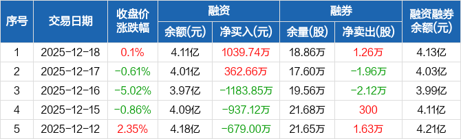 亚星锚链:融资净买入1039.74万元,融资余额4.11亿元(12-18)