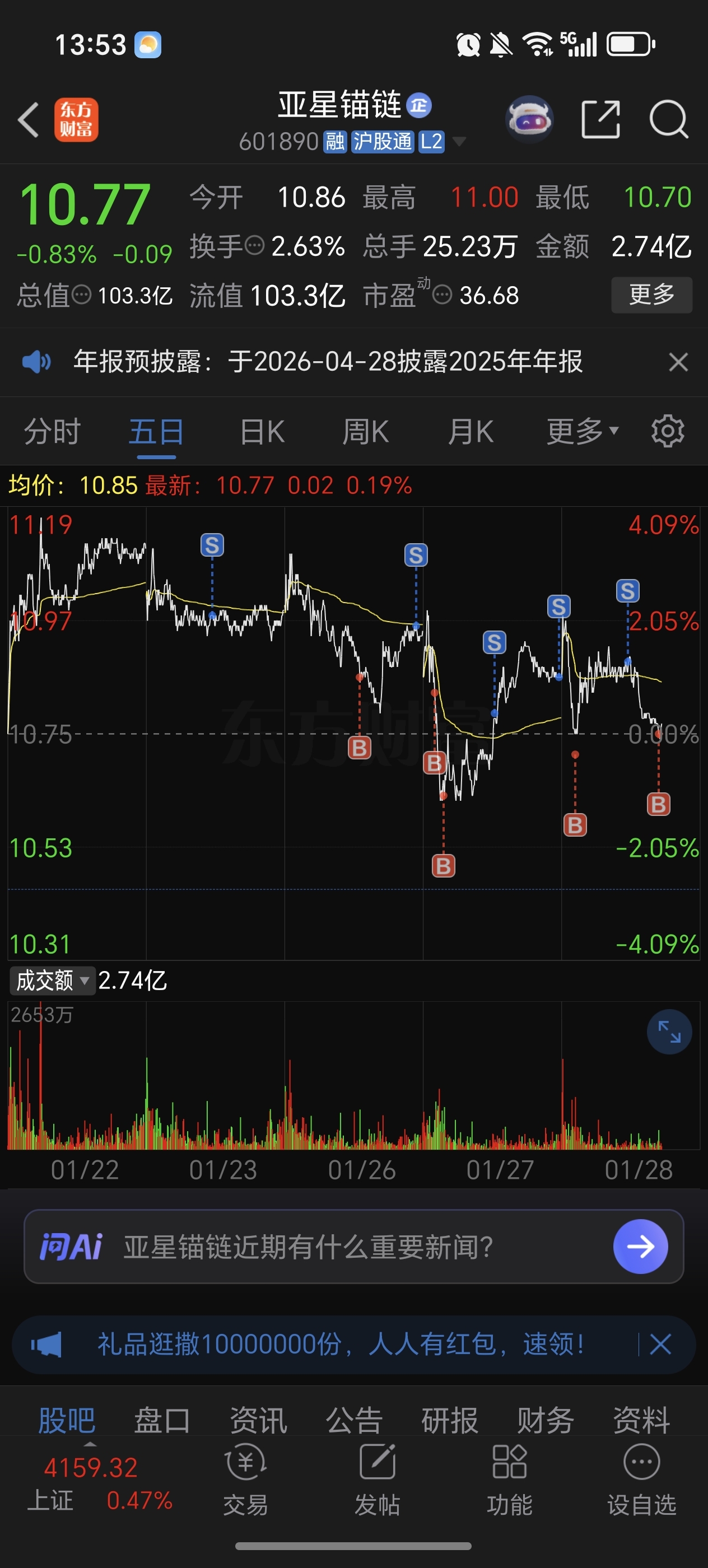 $亚星锚链(SH601890)$ 再不拉升给我洗走,我就真赚钱了!