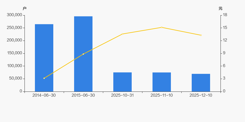 自2015年6月30日以来,公司股东户数连续3期下降,截至目前减幅为76.54%。2015年6月30日至2025年12月10日区间股价上涨50.35%。