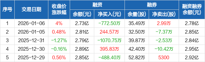 中煤能源:融资净偿还772.5万元,融资余额2.73亿元(01-06)