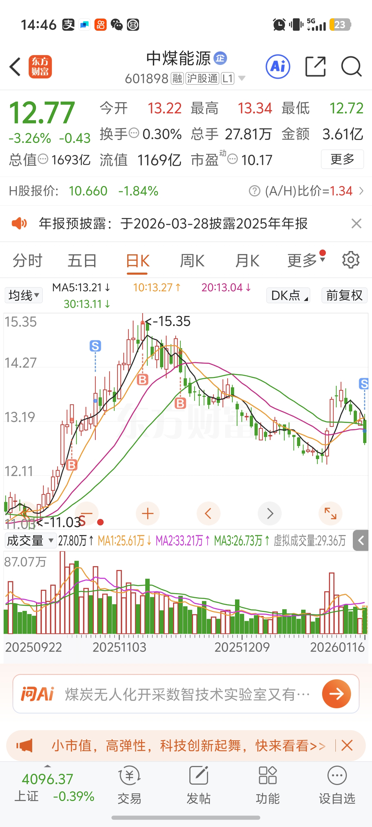 $中煤能源(SH601898)$ 这是准备创新低,兄弟们撤 前面是万丈深渊