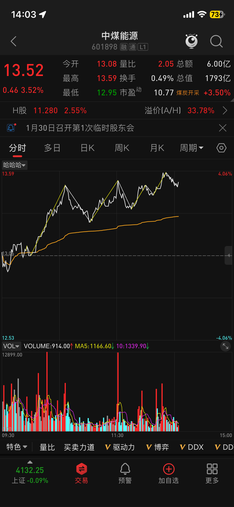 $中煤能源(SH601898)$ 60日线本周三开始将成为压力位,目前波浪底顶不断抬高的上涨分时图看似强势,但是一浪短过一浪,后面极有可能拉高假突破,可以参考周五大盘同款的分时今天早上是如何走的,所以周二周三只有放量才能打破技术图里的危险信号,周三若不放量则止盈。