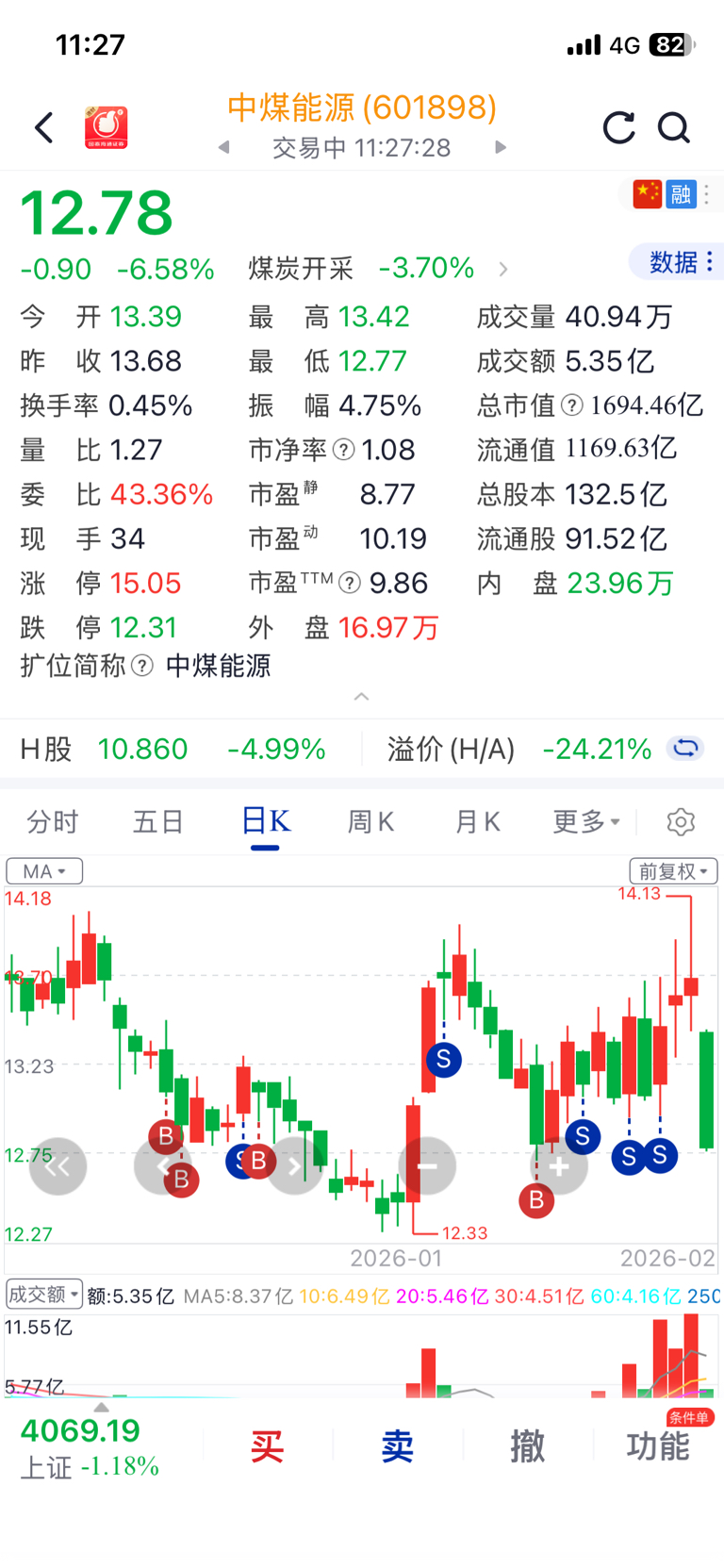 $中煤能源(SH601898)$ 运气,还好仓位减的足够少,没想到会跌这么多,因为不是高位。