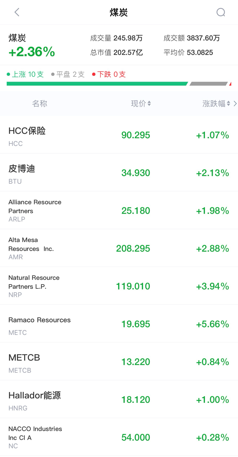 美股煤炭股大涨!
