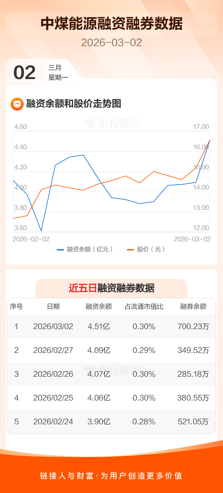 交易所最新数据显示,中煤能源于2026年3月2日获融资买入1.32亿元,融资偿还9075.44万元,当日融资净买入4156.62万元。目前,该股融资余额4.51亿,占流通市值比例为0.30%。