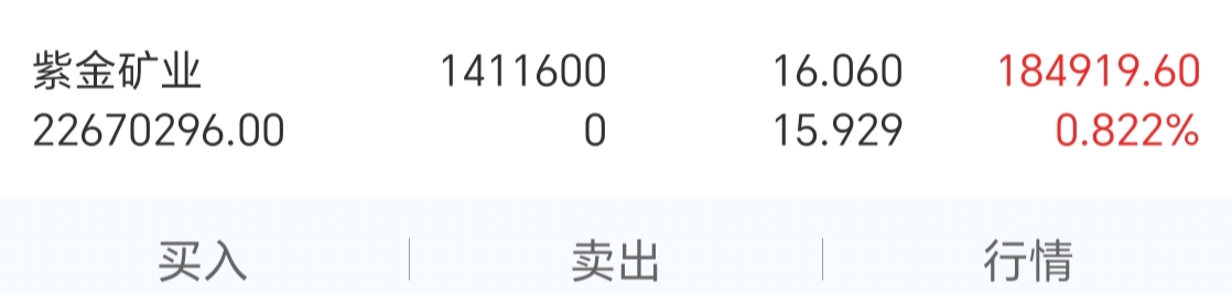 $紫金矿业(SH601899)$ 今日小小建仓,看看年底这两天能不能搞点零花钱过年
