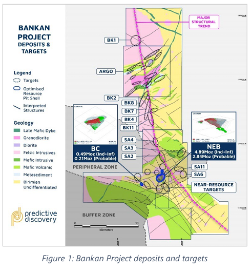 除了Bankan金矿中的NEB和BC矿床外,PDI还在勘探附近的其他区域,以及贯穿许可区的35公里黄金超结构向北的区域。