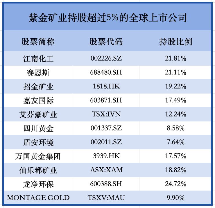 参控股全球十余家上市公司,提壮大“紫金系”资本体系
