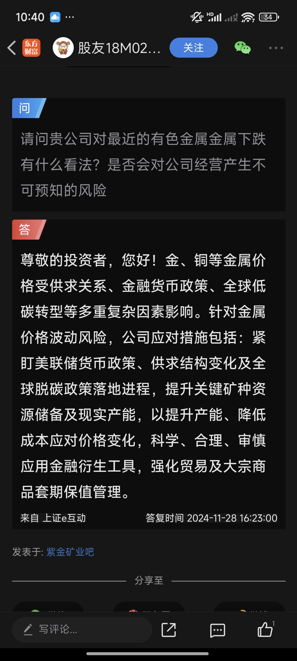 $紫金矿业(SH601899)$ 有套期保值的,慌个啥