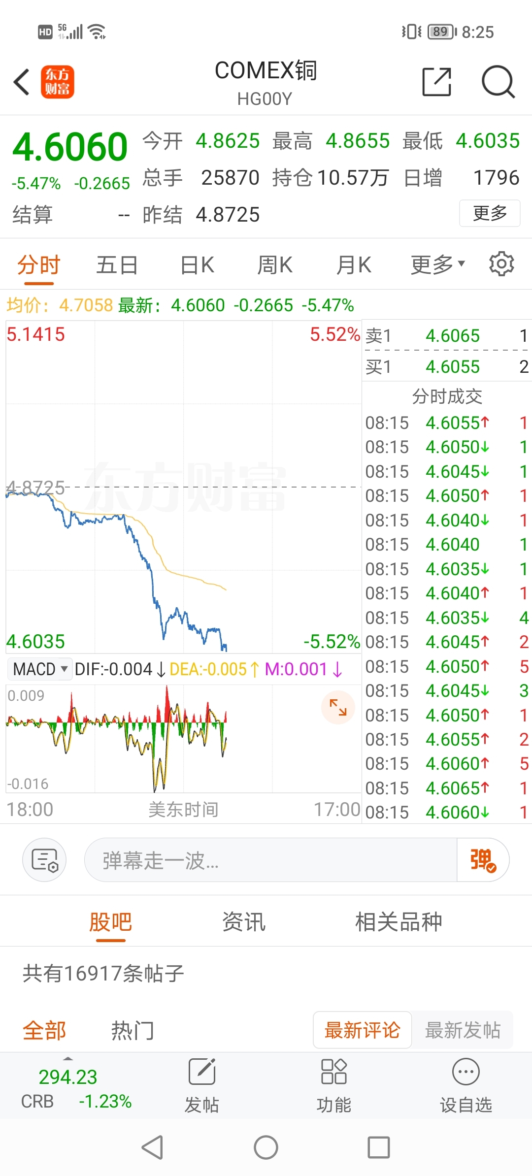$紫金矿业(SH601899)$ 美铜更夸张!已经暴跌近6%