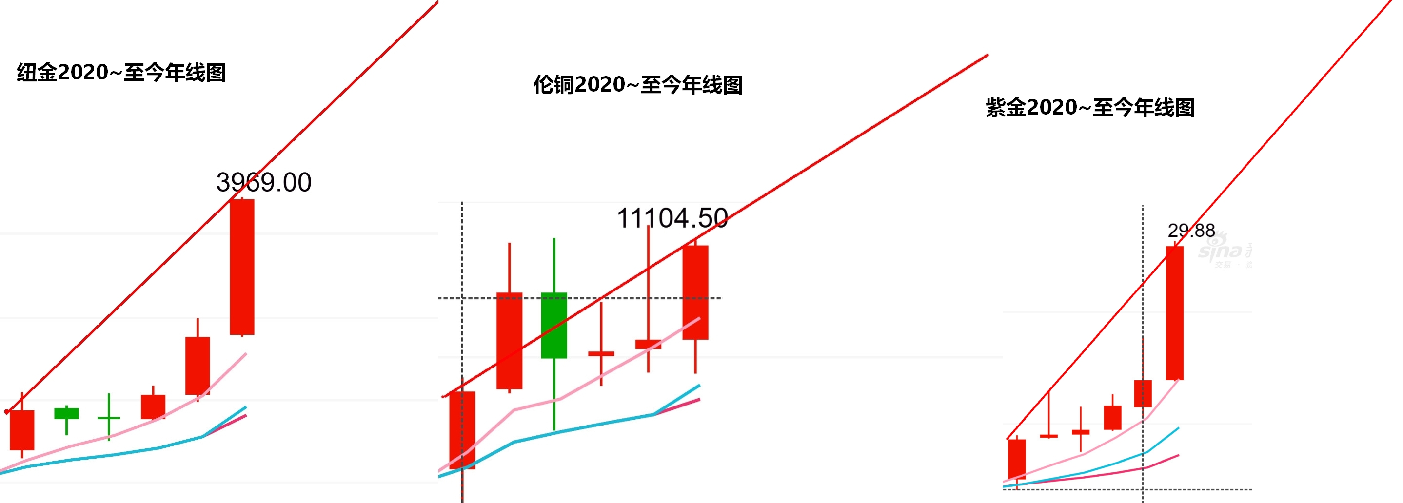 五年后纽金、伦铜、紫金价格如何?自己脑补吧。年线图走势: