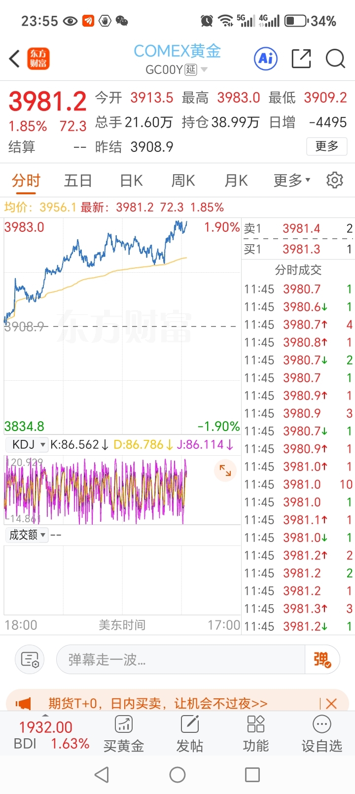 大家猜一猜10月9日大A开盘之前黄金会不会站稳4000美元每盎司大关?按今天1美