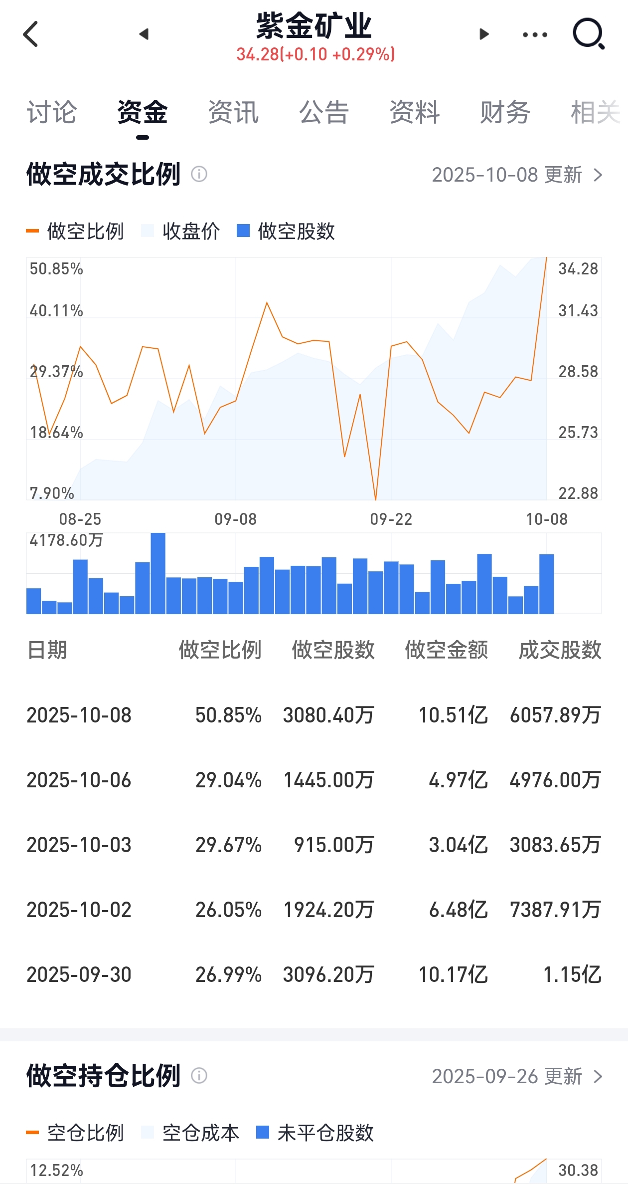 $XD紫金矿(SH601899)$ 搞笑!港股今天一半多的成交量居然都是卖空的。已经两百多亿的卖空量了,难道不需要平仓的吗?谁这么有钱啊?已经亏十个多点,几十亿了。