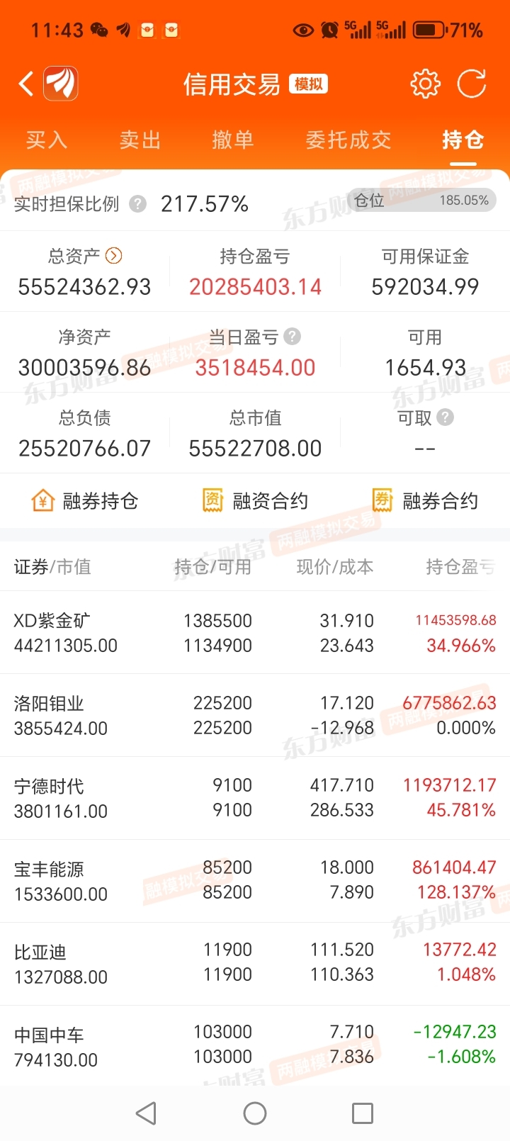 今年5月开的模拟仓,因为重仓股紫金大涨,赢利第一次突破了200点大关!