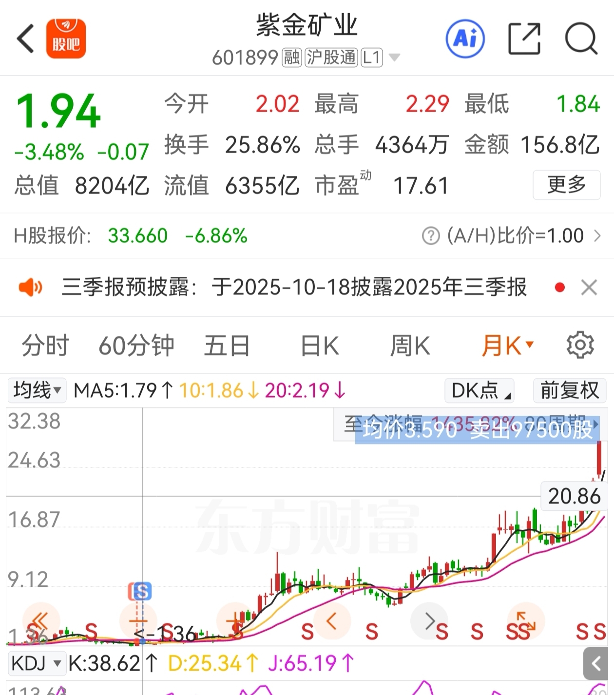 $紫金矿业(SH601899)$ 如果我持股到现在,挣多少钱?