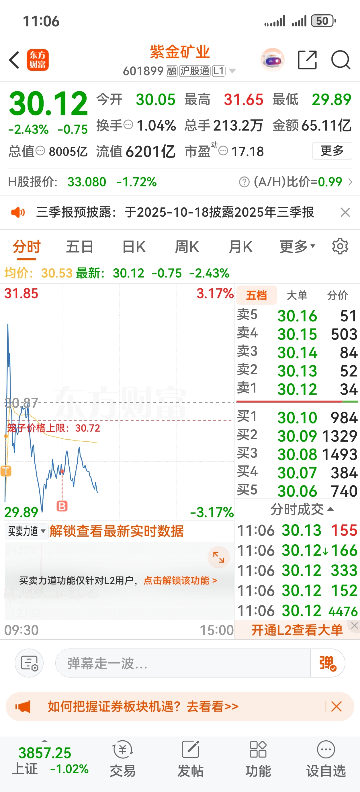$紫金矿业(SH601899)$ 30.30补仓,补高了