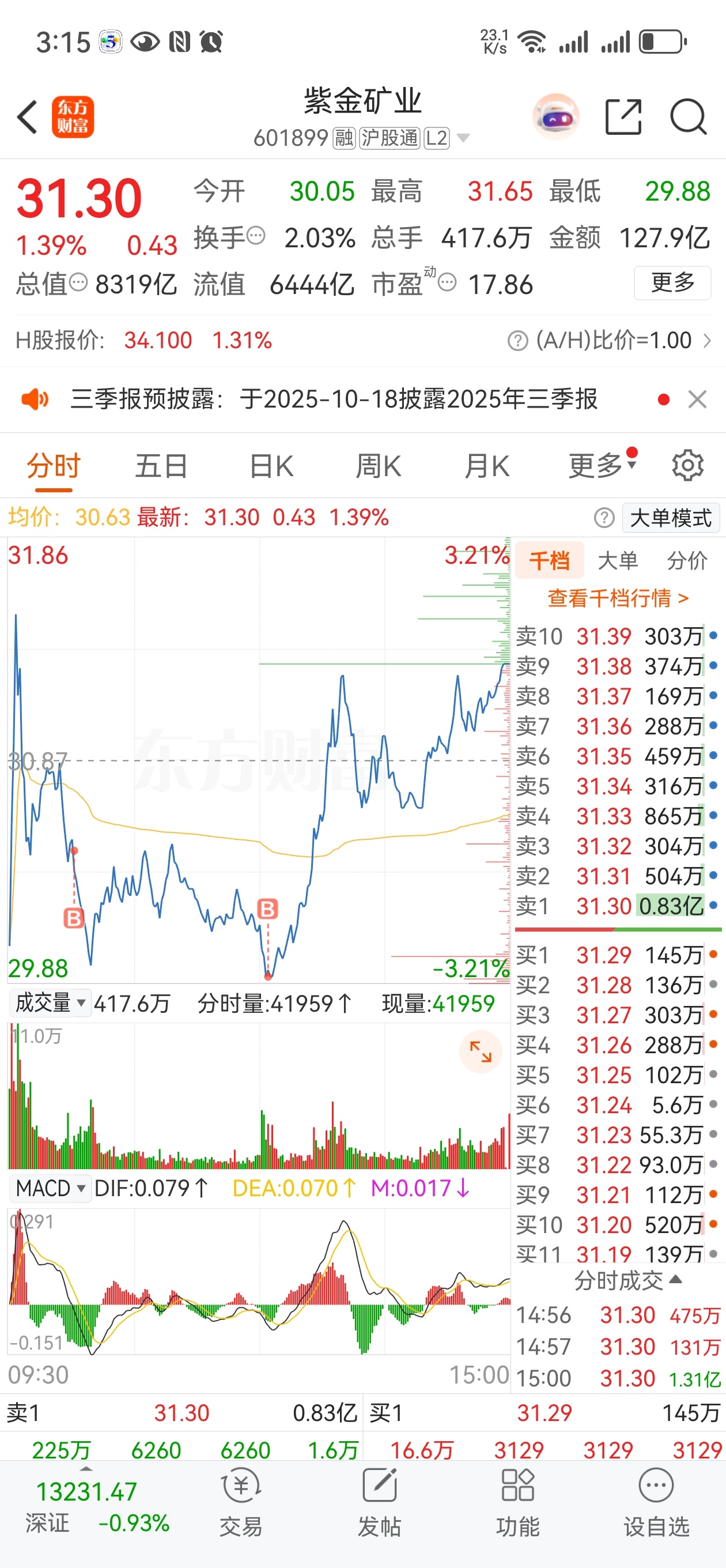 $紫金矿业(SH601899)$ 港股尾盘拉升,明天能吃肉吗