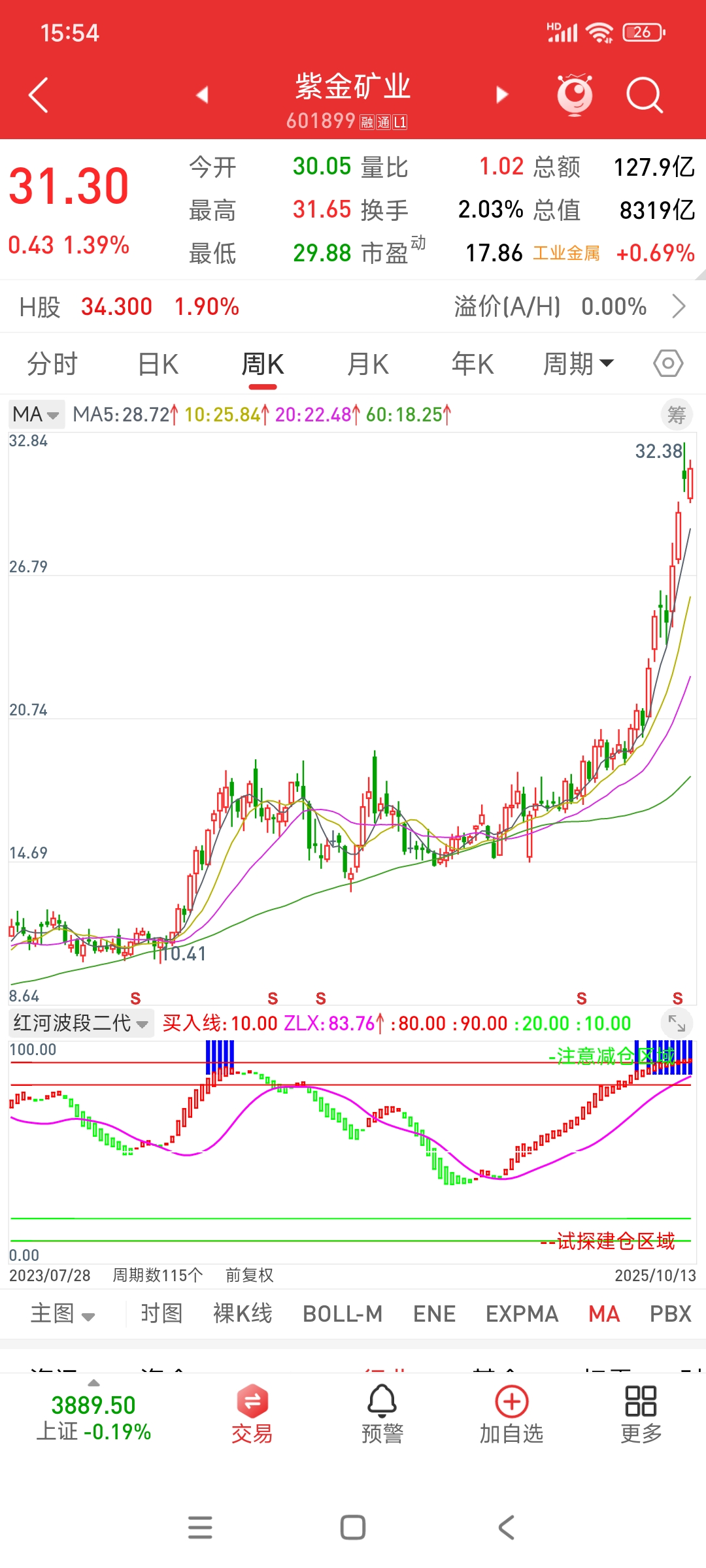 $紫金矿业(SH601899)$ 中线注意随时止盈就好,毕竟超买很久了,顶部随时出现红柱转绿柱,这里拿还是可以拿,买就没必要了,调整好了再加仓吧。