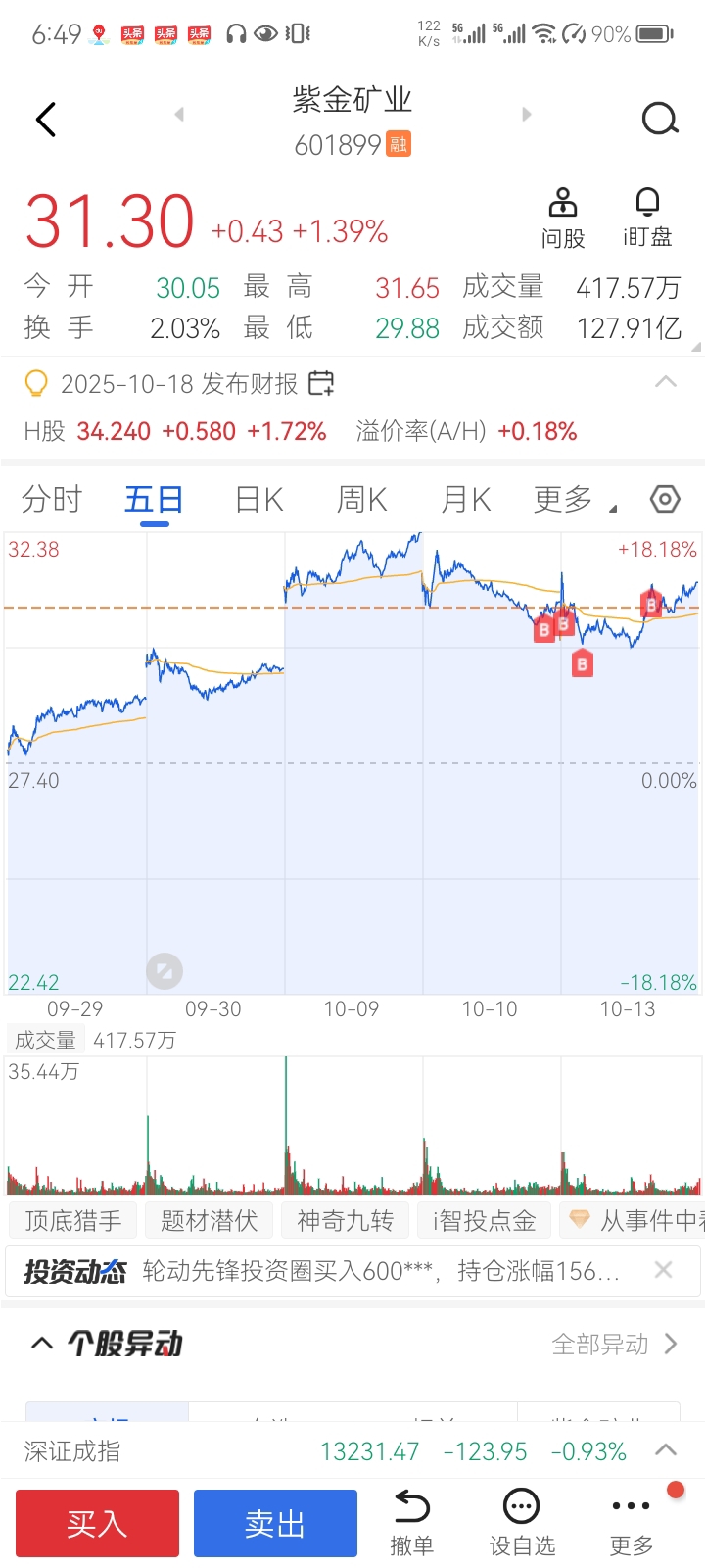 $紫金矿业(SH601899)$ 前天进的,昨天补的,今天能吃肉吗?