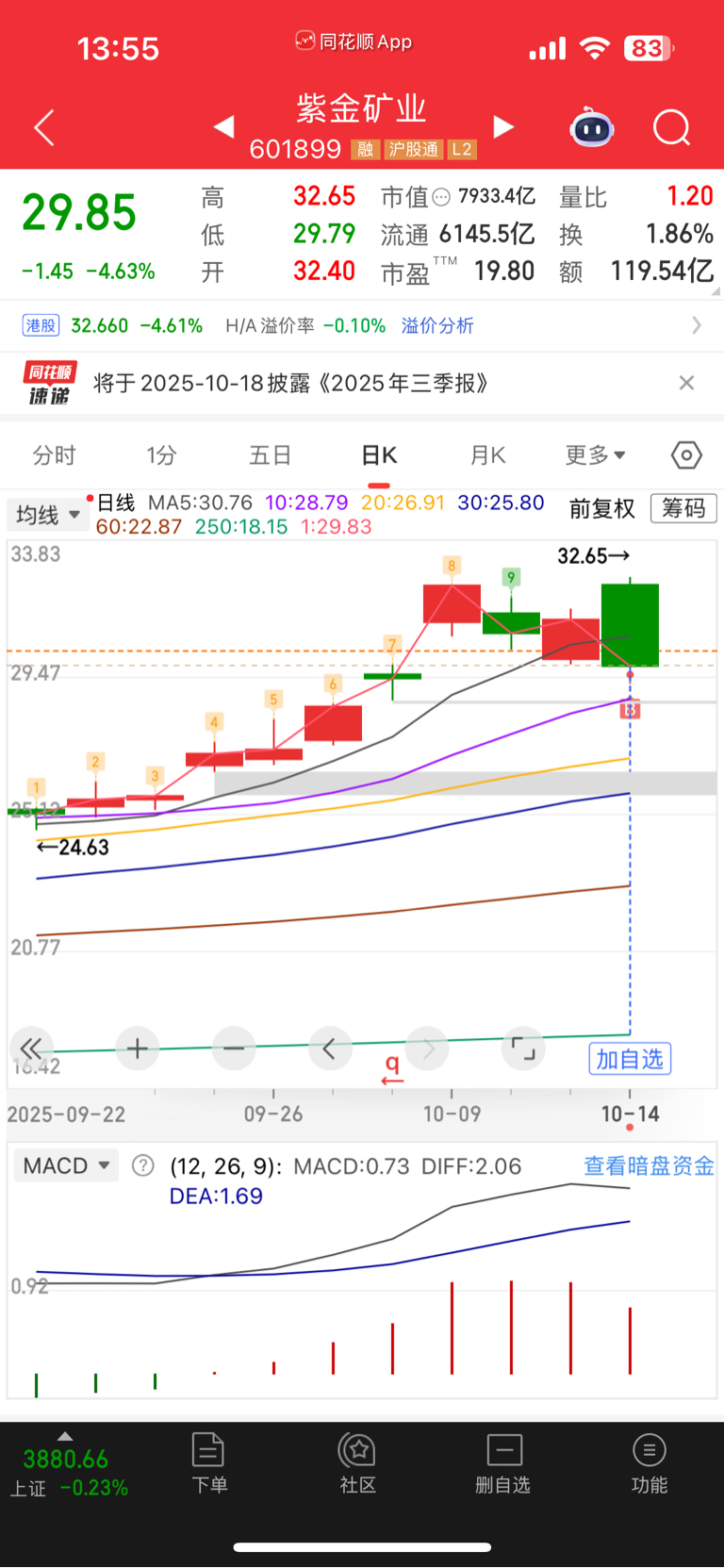 $紫金矿业(SH601899)$ 韭菜出手的威力还是大