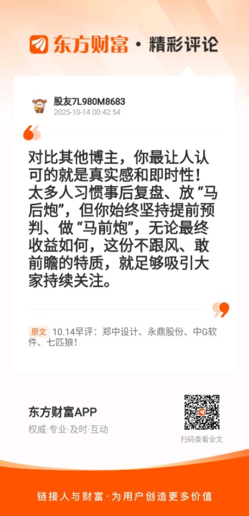 //:对比其他博主,你最让人认可的就是真实感和即时性!太多人习惯事后复盘、放 “马后炮”,但你始终坚持提前预判、做 “马前炮”,无论最终收益如何,这份不跟风、敢前瞻的特质,就足够吸引大家持续关注。 $紫金矿业(SH601899)$$南 京 港(SZ002040)$$天际股份(SZ002759)$