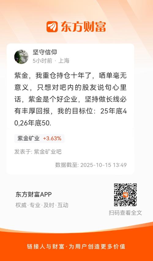 紫金,我重仓持仓十年了,哂单毫无意义,只想对吧内的股友说句心里话,紫金是个好企业,坚持做长线必有丰厚回报,我的目标位:25年底40,26年底50.