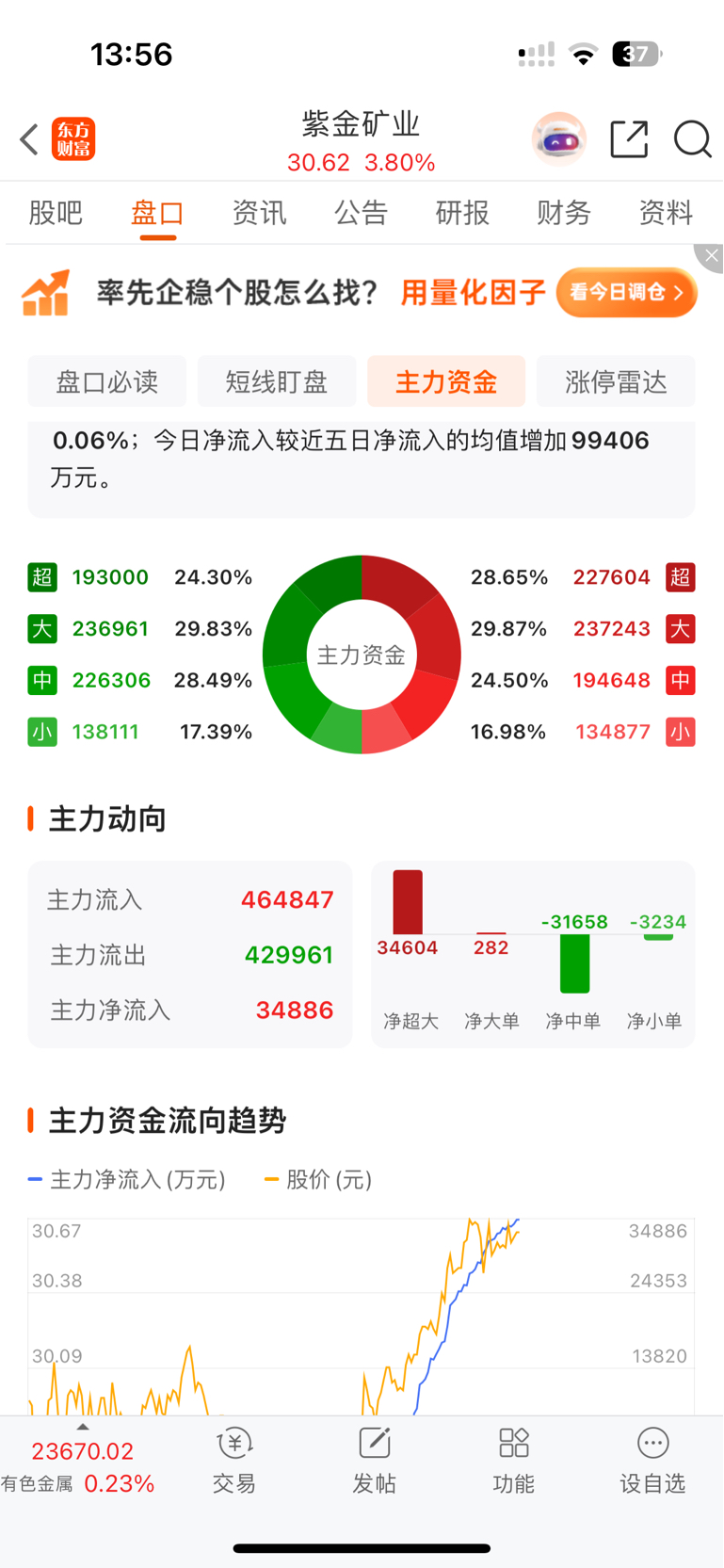 $紫金矿业(SH601899)$ 主力狂砸几个亿。不跟就是大憨