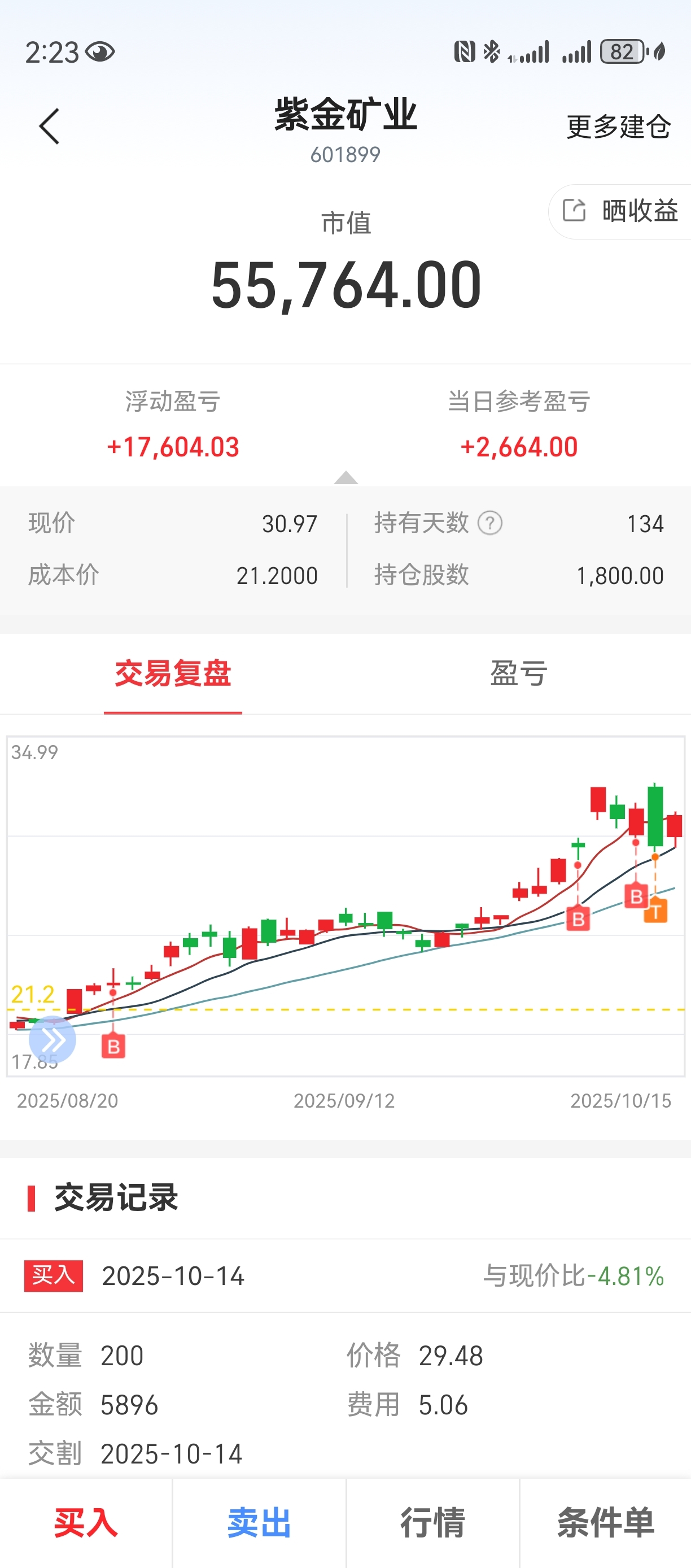 $紫金矿业(SH601899)$ 昨天觉得自己是卖了又买回来了今天觉得自己又不了