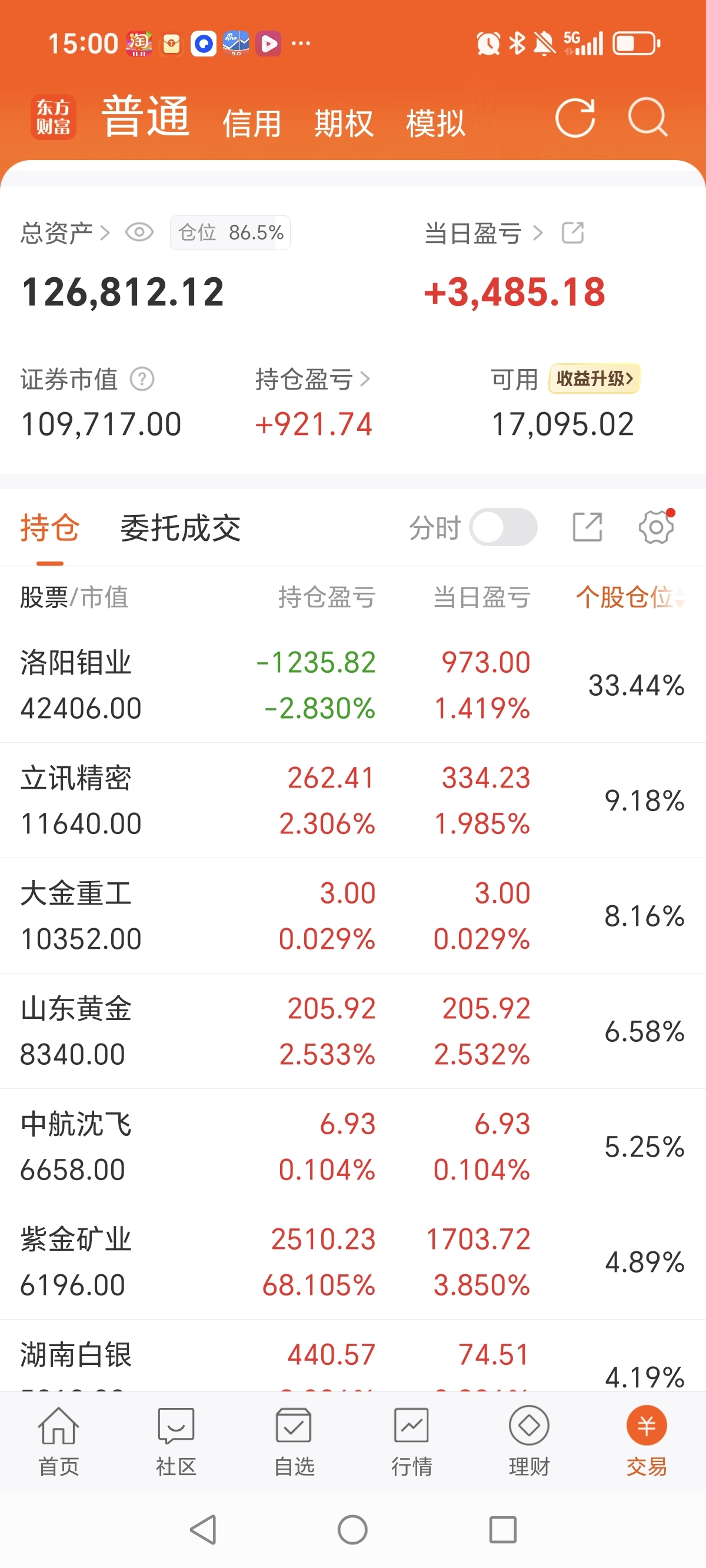 $紫金矿业(SH601899)$ 昨天亏5000,今天只回来3400