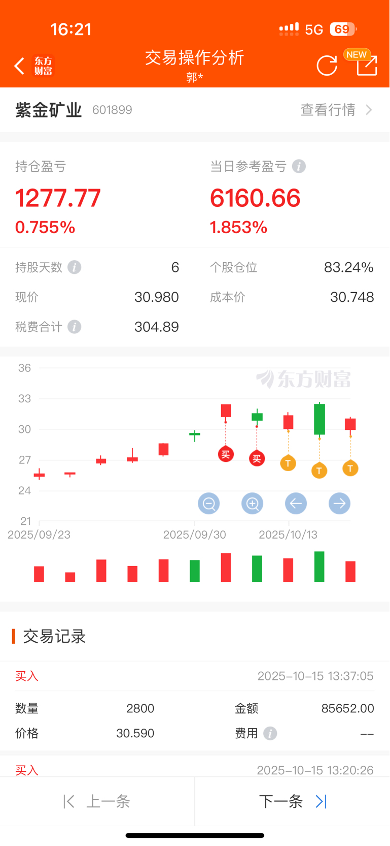 $紫金矿业(SH601899)$ 高位建仓。反复做套,万亿市值不是梦,扭亏为盈,大胆冲